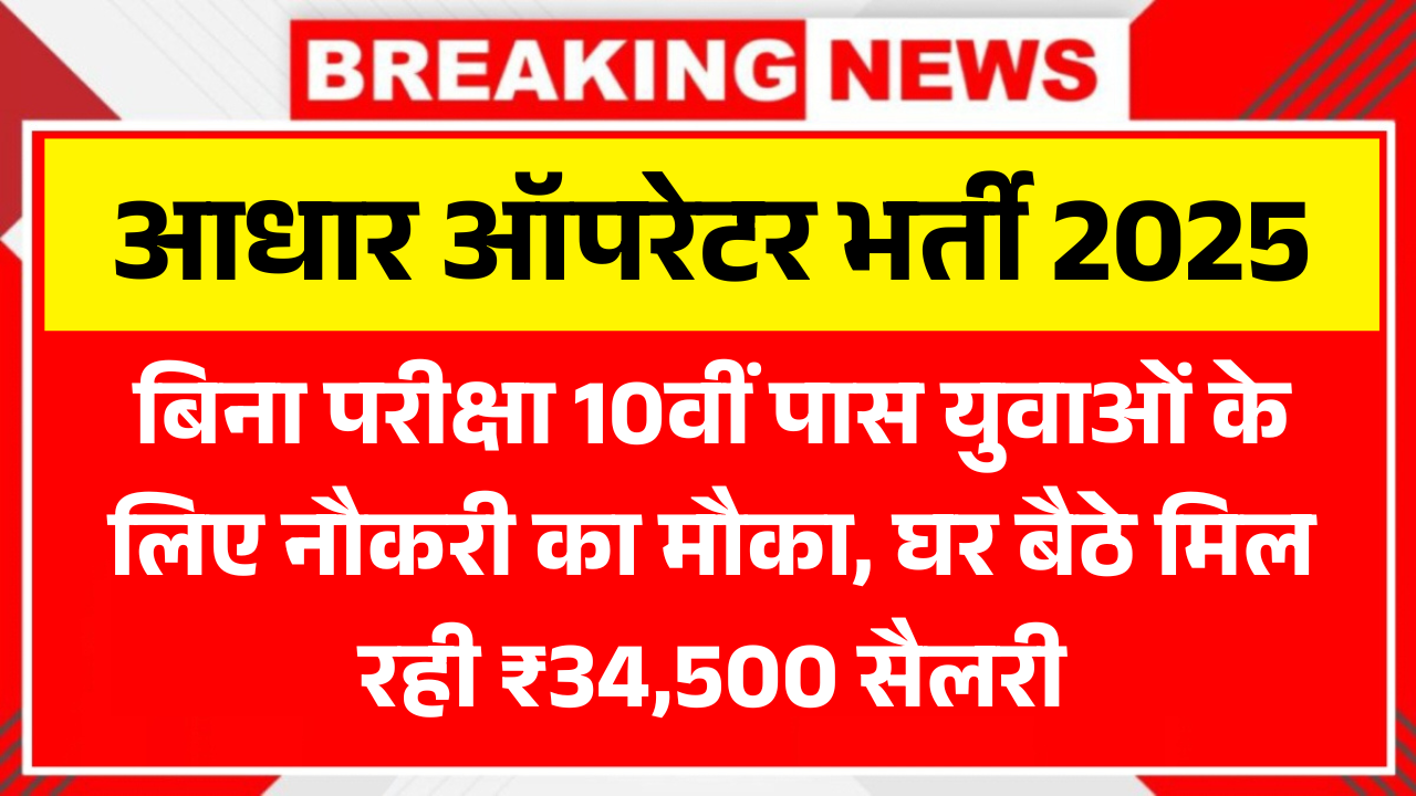 अगर आप 10वीं या 12वीं पास हैं और सरकारी नौकरी का सपना देख रहे हैं, तो आपके लिए एक शानदार मौका है। UIDAI की ओर से Aadhaar Operator Recruitment 2025 के तहत देशभर में आधार ऑपरेटर और सुपरवाइजर के पदों पर भर्ती प्रक्रिया शुरू की जा चुकी है। खास बात यह है कि इसमें किसी भी प्रकार की लिखित परीक्षा नहीं ली जाएगी, बल्कि योग्यता और दस्तावेज़ सत्यापन के आधार पर सीधी भर्ती होगी।
